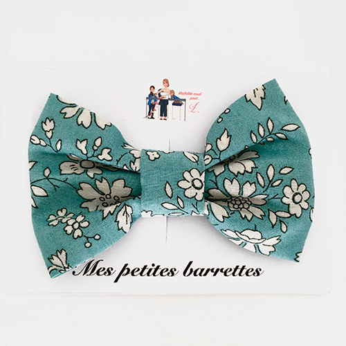 Pour un côté chic et raffiné, cette petite barrette avec son nœud en Liberty viendra facilement tenir la chevelure.
