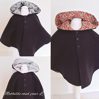 Les capes sont en polyester assez chaud doublées d’un tissu en Liberty ou d’un coton à pois ou à carreaux.