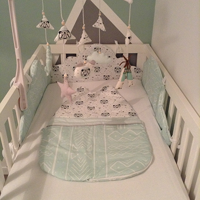 Je peux également vous proposer une décoration personnalisée pour la chambre de vos (futurs) enfants. Vous souhaitez un thème en particulier, des tissus que vous avez repérés, des coloris bien précis, pas de soucis je peux vous confectionner tour de lit , gigoteuse, mobile, panières, fanions, anneaux de dentition, tableau, sac à langer, protège matelas à langer……Tout sera en accord parfait!